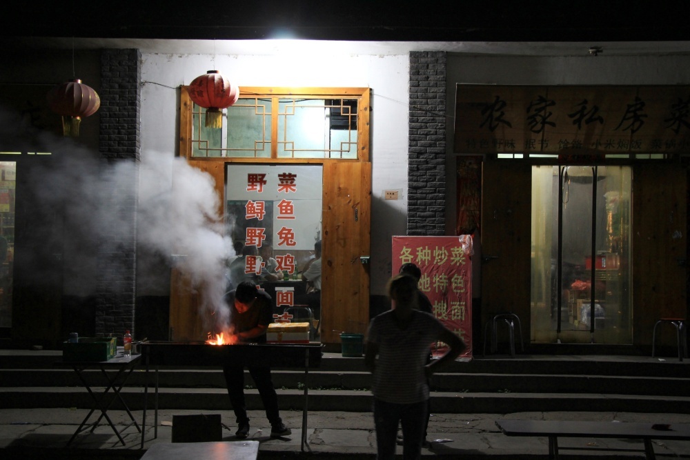 Po večeři jsme došli na křižovatku ke krámku, kde si každý den dává pivo. Samozřejmě se kolem nás shlukly děti, kterým škola začíná v šest a to prý běhají a skákají, pak dělají další sporty jako fotbal a basketbal, odpoledne mají 2 hodiny po obědě pauzu a končí v půl šesté odpo. V angličtině se ptají, jak se jmenujeme, jsou zvídavé a usmívají se. Mluví na nás čínsky, ale mi neumíme ani slovo. Nikde tu k nám nevidím ani necítím nenávist. Dokonce ani nešoupají nohama jako Japonci. Ale to hlasité flusání, to je tu časté. Japonci zas hlasitě popotahují. Pivo stojí 3 juany a toaletní papír 20.