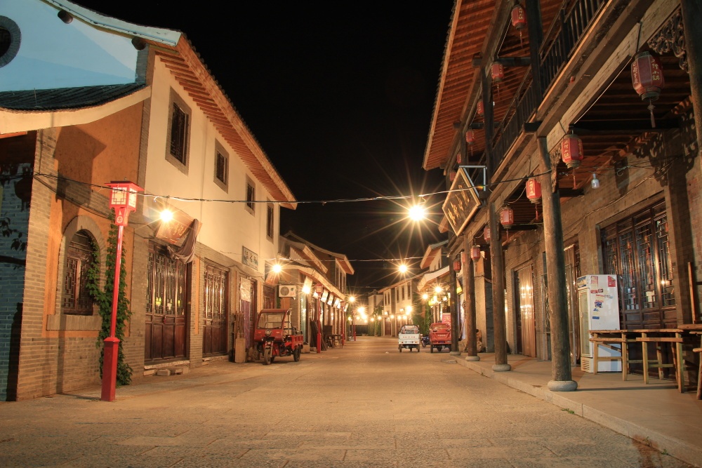 Vlastně, včera po sedmé, kdy už zapadlo slunce, jsme vzali foťák a stativ a šli se projít. Tady noční osvětlení nesvítí, jen okna domů. K tomu neosvětlení skútristé s větropláštěm na řidítkách před sebou. Ani památníky nebyly osvětlené! Škoda, bývaly by to byly pěkné fotky. Jediné, co září na kilometry daleko, je rudý most přes řeku, jehož vrchní pruh je jakási LED obrazovka, na které se objevují různé motivy a znaky. Ten mám nafocený. A v té tmě jsme šli po té několikaproudové silnici, naštěstí auta i skútry jezdí pomalu. Prošli jsme kolem dost velké budovy policejní stanice v západním stylu do čínské čtvrti, kam chodíme cvičit. Ta taky moc nesvítila, ale pár fotek mám. Potom jsme přešli ulici a tam u nějaké velké budovy do rytmu hrajících čínských klasik stříkaly vodotrysky, které byly osvětlené… Velice hezká podívaná. U ní byla dřevěná plošina s posezením a tak jsme se usadili a zaposlouchali se. Šla jsem tam s foťákem na stativu a kolemjdoucí policajt jen koukal. Nikdo mi nic neřekl, trochu jsem se tu bála fotit kvůli obavám, že si budou myslet, že je foťák třeba zbraň, nebo že mi ho zabaví, protože focení je zakázané… Znovu jsme šli pod zářícím rudým mostem zpět na akademii. Zítra je víkend! A my se vydáme tady na nedaleké vrcholky na stavbu připomínající čínskou zeď. Je na ni vidět z okna. Jsem pořád unavená, i když tu spím celou noc. Holt aklimatizace trvá. A musím zaťukat, průjem ještě nebyl a to jsem nebrala žádné prášky. Hudba opravdu prolíná jejich život. Vodotrysky u budovy stříkají a hrají celý den. Dnes večer u stanice policie hrála tai-či hudba a na cestě zpět u budovy školy jsme míjeli tančící Číňany. Všichni se tu znají a jsou společenští.