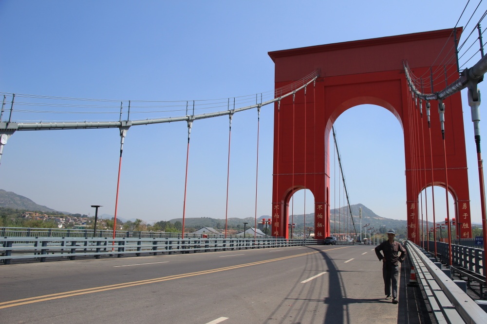 Vyrazili jsme přes červený komunistický most doleva, po pravém břehu vyschlé řeky. Cestou jsme viděli pomačkanou obrovskou cikádu na silnici. Kolem roste hodně stromů a rostlin, které jsou i v Čr: topoly, kukuřice, pelyněk, broskvoně.