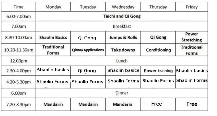 Jak tady vůbec cvičíme? Máme tréninkový plán trochu pozměněný od šaolina, který vede kung fu školu v Bruntálu.