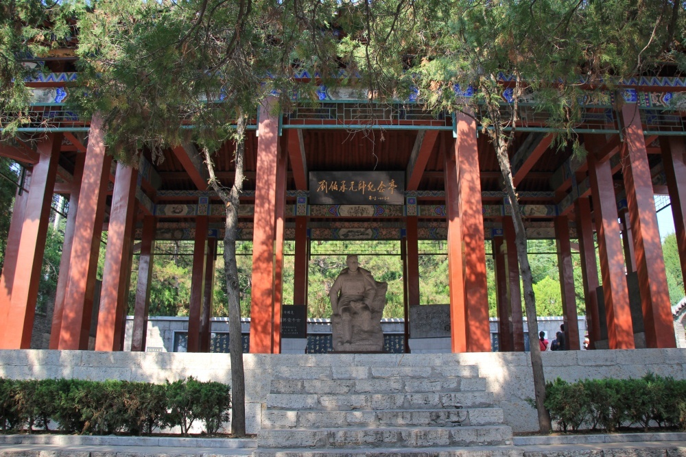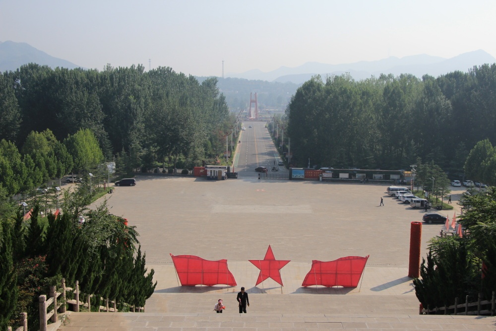 Snídaně byla asi v půl devátý. Po ní se vydáváme do památníkového parku. Projdeme přes Vítězné náměstí, kde se po deskové podlaze táhne ten vytesaný vojenský příběh o boji proti japonským vojskům. Nahoru po schodech jdeme ke štíhlému památníku po dlážděné cestě kolem chrámu nebo svatyni k muzeu. Tam jdu dovnitř a fotím výstavu. Venku fotím X s důchodcem v uniformě komunistického vojáka. Sejdeme dolů po schodech od muzea, kde je znovu velké náměstí a kde je veliká rudá hvězda. Vlevo u budovy stojí v řadách lidi a nacvičují chůzi. Byli jsme se podívat i nahoře na kopci, kde jsou u cesty busty čínských důstojníků. Je jich tam mnoho. Vystoupáme výš, k pomníku důstojníka, jehož socha dřepí v takovém otevřeném chrámu. Kousek je výhled na okolí s horami. Po chvíli fotím velkého pavouka číhajícího v síti. Potkáváme rodinku, která má v tašce asi 10 hroznů vína a chystá se piknikovat.