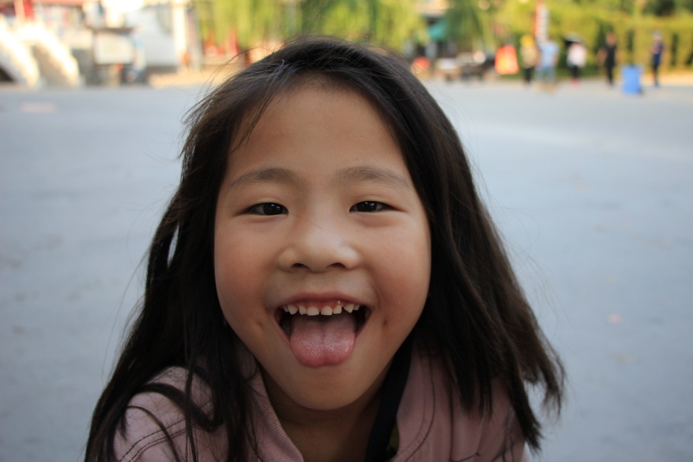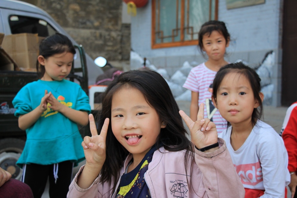 Dole ve vesnici jdeme do krámku. Kupujeme si studené pití. Já čaj a X svoje pivo. Venku si sedneme na kraj křižovatky na dětské plastové stoličky. Přiběhne chumel malých dětí. Zvídavé holčičky „what¨s your name?“, začínají svojí komunikaci s námi. I když jim odpovíme, tak se stále ptají na to samé. Fotím je a ty se u mě seběhnou, aby si prohlédly fotky. Žena která opodál sedí s druhou, která má na triku nápis TROUBLEMAKER, plete klobouk z kukuřičného šustí. Na mě zvolá „sit down“ a poplácá na stoličku. Pak mi něco čínsky říká a naznačuje rukama. Nevím. Anglicky tady nikdo neumí mluvit. Jdu k X a skupině dětí.