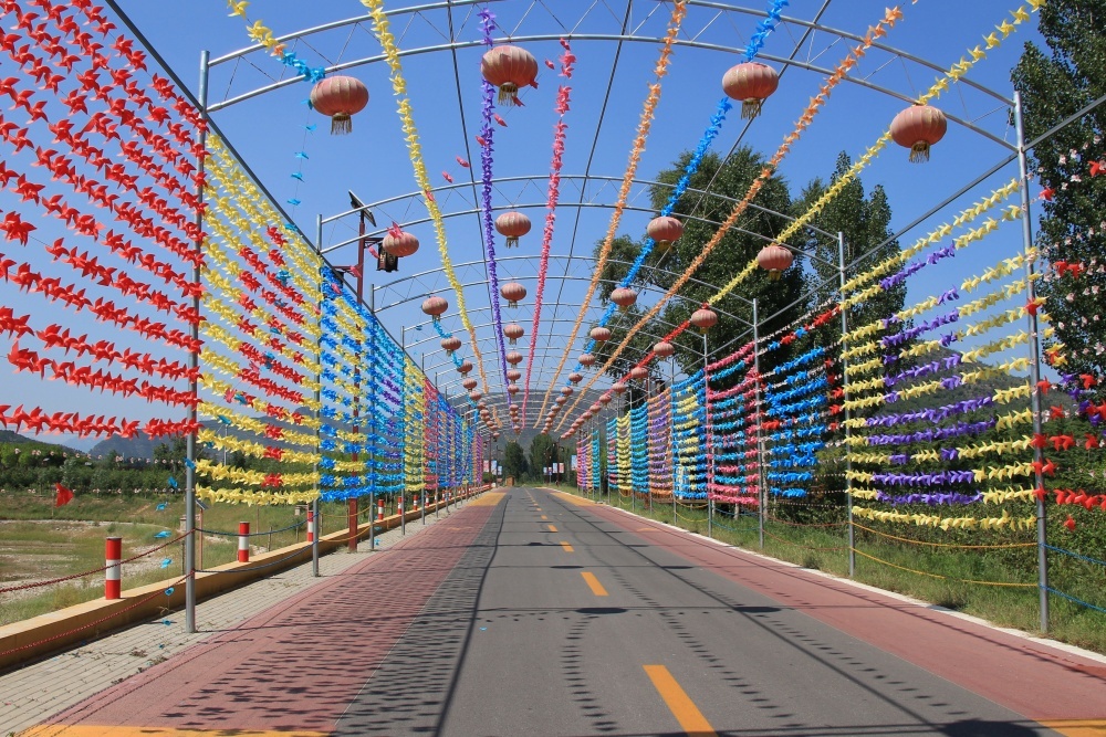 „Palác Wahuang, známý jako Nainaiding, nacházející se v okrese Shexian v provincii Hebei, je jedním ze slavných taoistických chrámů v severní Číně. Říká se, že bohyně NüWa dávných časů tavila kameny, opravovala rozbité nebe a hnětla zemi, aby zde vytvořila lidské bytosti. Palác Wahuang v okresu Shexian je nejstarší a největší starověká budova používaná k uctívání bohyně NüWa starověku a byl postaven v 6. století. V počátečním období byl palác Wahuang malý, skládal se pouze ze tří kamenných místností a několika soch bohů a Buddhů. Během následujících dynastií byl průběžně rozšiřován a budován. V současnosti se rozkládá na ploše 760 000 metrů čtverečních a zahrnuje ubytování Chaoyuan, palác Tingcan, palác Guangsheng a pamětní oblouk atd. Palác Wahuang je postaven na strmém úbočí hory; pavilon Wahuang, Budova odívání, šestiúhelníkový pavilon, budova Yingshuang, věž zvonu, dřevěný pamětní oblouk, Jezerní dům a brána paláce jsou uspořádány na nádvoří pod horou. Pavilon Wahuang, vysoký 23 metrů se opírá o útesy a směřuje na jih. Čtyřpodlažní pavilon je pokryt glazovanými dlaždicemi. Druhé až čtvrté podlaží je ze tří stran obklopeno chodbami. Na útesech, o které se pavilon opírá, je instalováno osm železných řetězů. Na útesech je vytesáno deset buddhistických súter.„