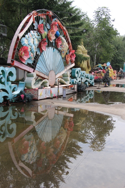 Dopoledne bereme kola a šlapeme podél řeky k zábavnímu parku s gigantickým stromem. Kola nemají žádné převody, takže je to taky dobrý trénink na nohy. Šlape se mi hůře než minulý týden. Mám ztuhlé nohy. Na parkovišti před parkem nestojí ani jedno auto. Je ale otevřeno a line se sem hudba. Vstupní brána je ve tvaru draka. Jsme jediní návštěvníci. Po chvíli se nedivíme proč.