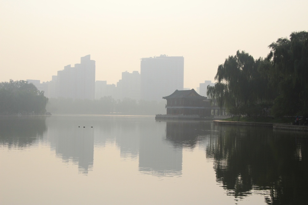30. září. Včerejší dojem z Pekingu byl následující. Rozpálené betonové město, nad kterým se vznáší jakýsi světlý opar (jestli je to prach či smog) se suchým vzduchem. Z okna hotelu nejsou zcela jasně vidět mrakodrapy několik km vzdálené.