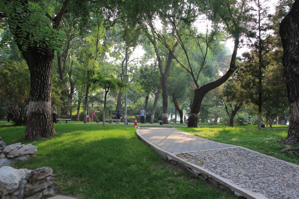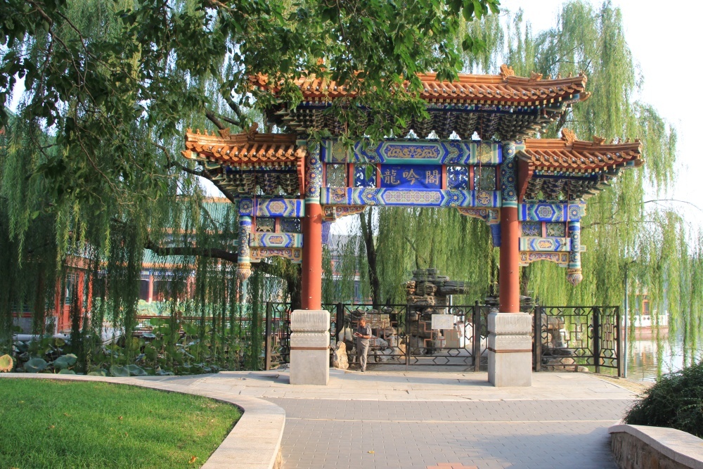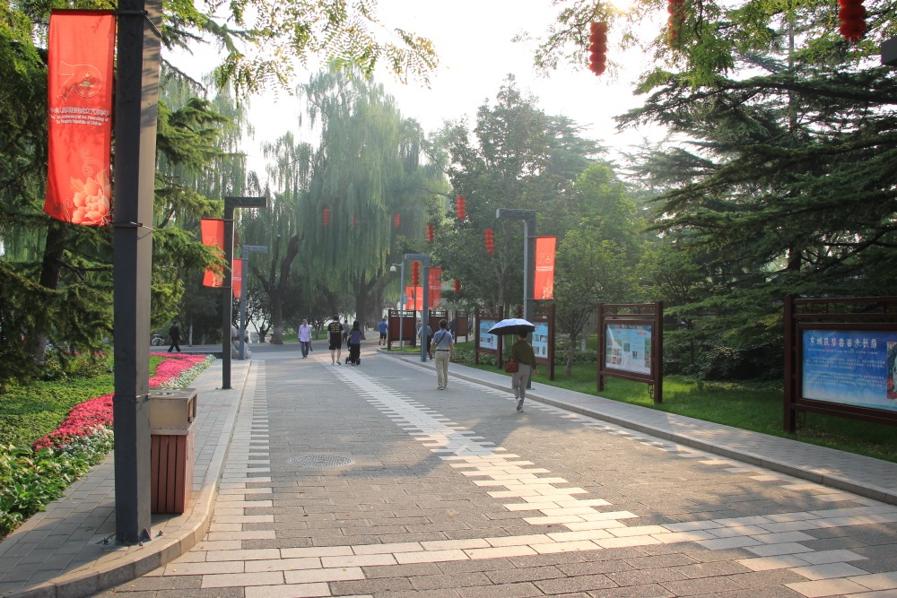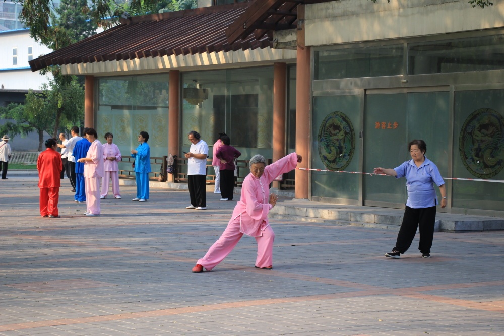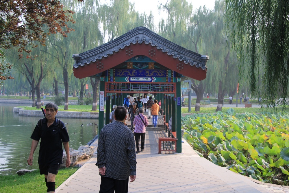 Ráno jdeme znovu do parku Longtan. Od hotelu je tak 1 km. Vstupné 2 juany, dnes ho ale vidíme celý ve světle. Je opravdu velký, ale jak to tu žije! Děti, mladí, staří. Lidé cvičí ať už na hudbu nebo si jen tak tleskají, běhají, hrají si. Tancují, zpívají, cvičí tai-či. Jedinci i celé skupiny. Ta atmosféra je velice příjemná. Je vidět, jak milují pohyb. K tomu je v parku velké jezero, kolem kterého se vinou stezky a které překlenují kamenné mosty. Všude jsou poseté červené altánky a svatyně. Kolem zelená tráva se záhony pestrobarevných květin, keře a stromy. Ve vodě jsou lotosy, ale nekvetou. Škoda. K hladině se sklánějí vrby. Je tu i malý zábavní park.