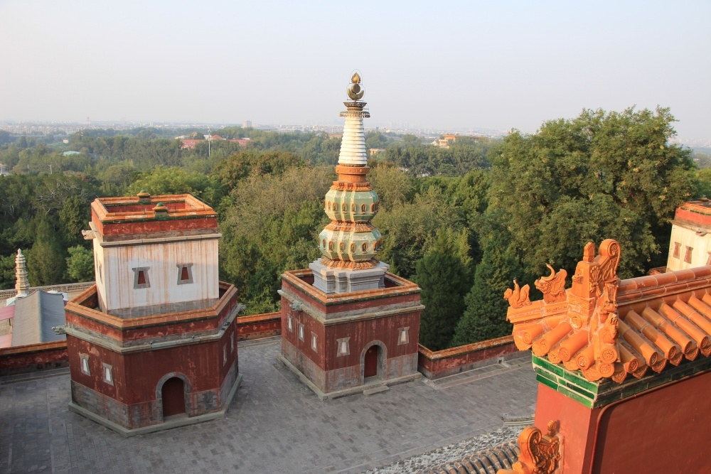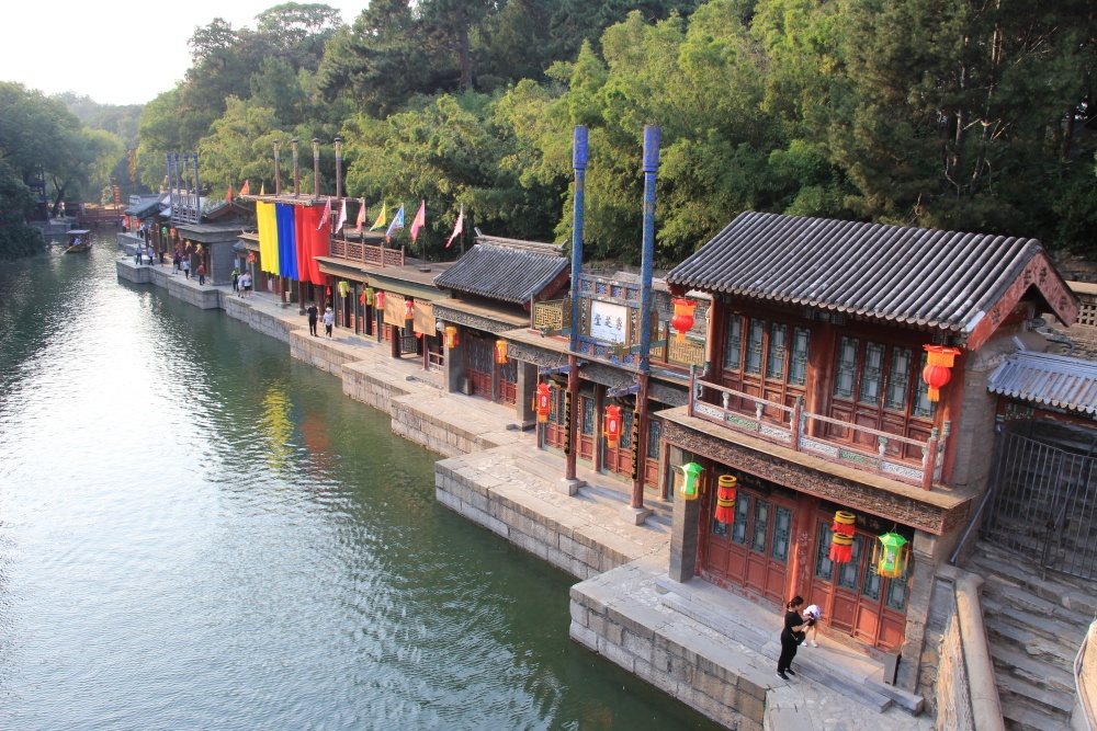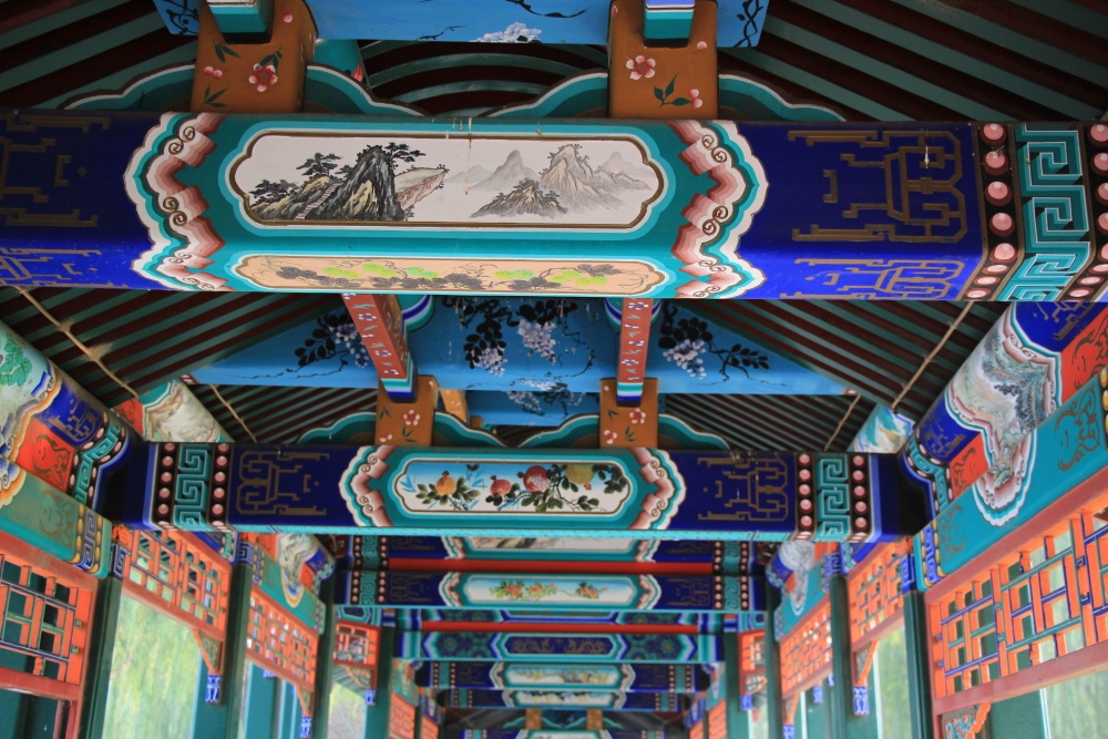 Vystupujeme, jdeme společně s davem pár minut a vidíme turnikety u vstupu do Letního paláce. Jsou asi 4 hodiny a mají otevřeno do 20:00. Bude to těsné. Stmívá se v půl sedmé. Znovu kontrola, pak přes most, pod námi je malá tradiční čtvrť u vody, před námi se zdvihá Letní palác. Na nádvoří lákají X na studené pivo. 30 juanů. Se zbláznili. Říká ne, tak prý 25. Jdeme dál. Pivo normálně koupíte 10x lacinější.